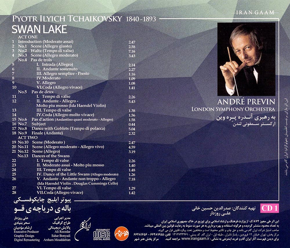 این آلبوم اجرای ارکستر سمفونیک لندن به رهبری آندره پِرِهوین از باله بینظیر «دریاچه قو» است که در دو لوح به انتشار رسیده است.